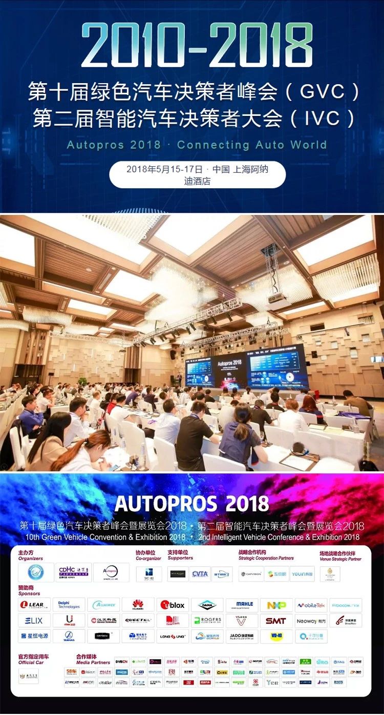 2018年5月15日-17日,由上海決策者經(jīng)濟(jì)顧問(wèn)股份有限公司、上海決策者產(chǎn)業(yè)研究院汽車委員會(huì)主辦的Autopros2018第十屆綠色汽車暨第二屆智能汽車決策者峰會(huì)&展覽會(huì)在上海阿納迪酒店圓滿落幕,來(lái)自全世界的812位與會(huì)代表,305家企業(yè)受邀出席盛會(huì),50家前裝車廠以及53家媒體現(xiàn)場(chǎng)報(bào)道,共同聚焦“綠色、智慧”出行,以創(chuàng)新思維迸發(fā)無(wú)限生機(jī),探索未來(lái)科技帶來(lái)的無(wú)限想象。