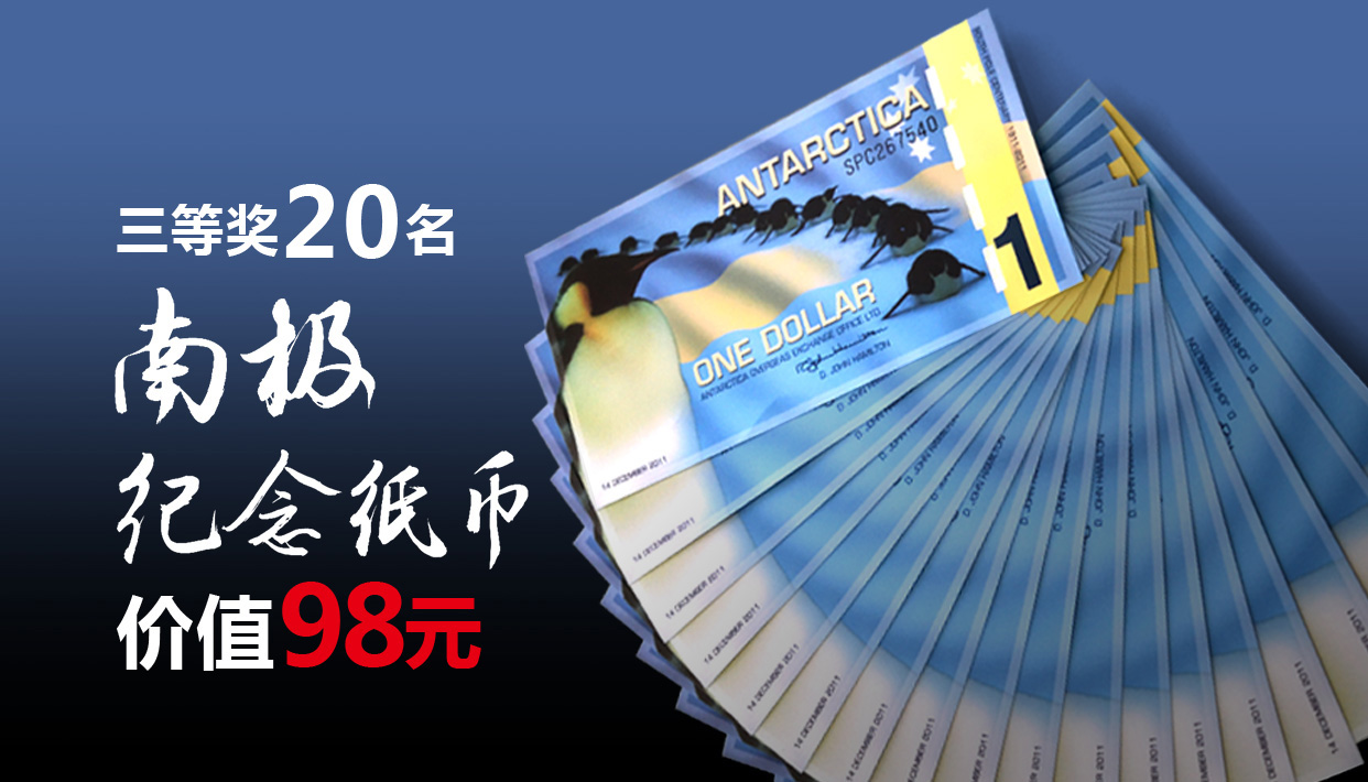 三等獎(jiǎng)20名 獎(jiǎng)價(jià)值98元 南極紀(jì)念紙幣
