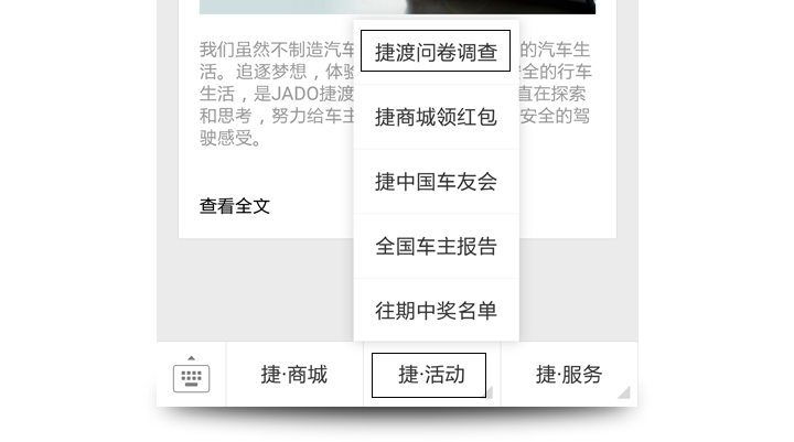 2016年03月29日~2016年04月06日 【參與方式】 關(guān)注并打開公眾號(hào)[捷渡中國(guó)] 點(diǎn)擊[捷·活動(dòng)]--[捷渡問卷調(diào)查] 即可參與問卷調(diào)查 問卷調(diào)查結(jié)束后 將有1次抽獎(jiǎng)機(jī)會(huì)